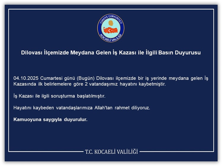 Konuyla ilgili Kocaeli Valiliği açıklama yayımladı.