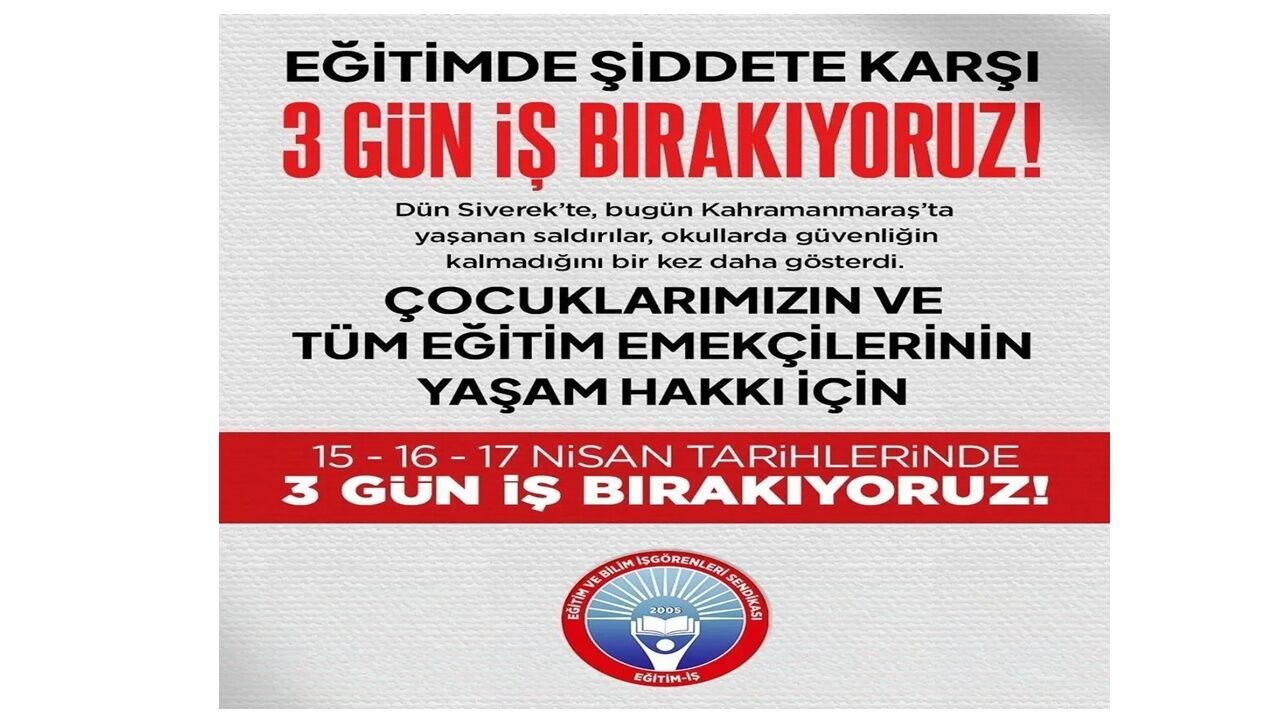 Eğitim-İş, yalnızca okula gitmeme kararıyla sınırlı kalmayarak yarın Türkiye genelinde eylem yapılacağını da açıkladı. Sendika üyelerinin ülke çapında protesto gerçekleştireceği belirtilirken, eğitimde güvenlik sorunlarının kamuoyuna güçlü şekilde taşınması hedefleniyor.