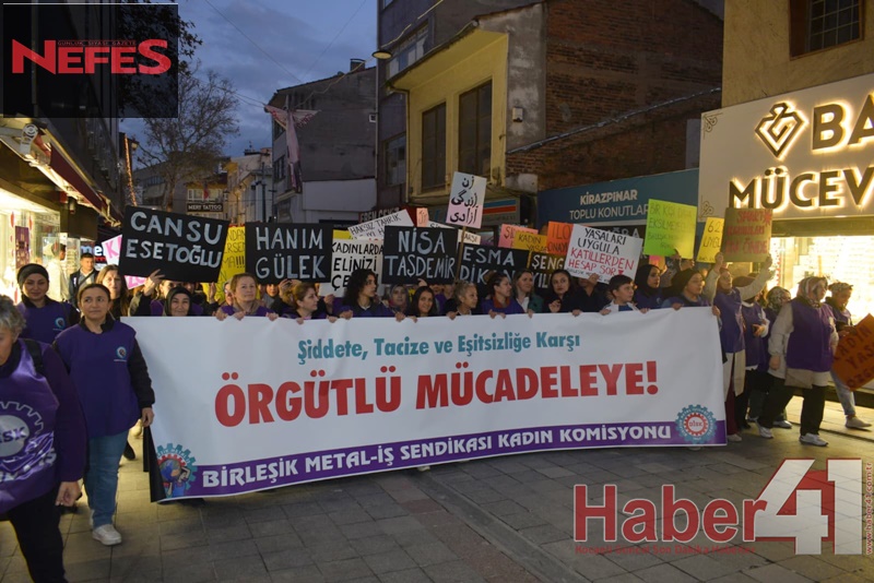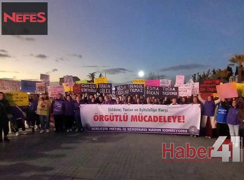 DİSK/Birleşik Metal-İş Sendikası Kadın Komisyonu, 25 Kasım Kadına Yönelik Şiddete Karşı Uluslararası Mücadele Günü kapsamında Gebze’de yürüyüş ve basın açıklaması gerçekleştirdi. Eski Çarşı Çeşme önünde toplanan kadın işçiler, sloganlar eşliğinde Gebze Kent Meydanı’na yürüdü. Açıklamayı sendika üyeleri Dilber Soylan ve Senem Algül yaptı.