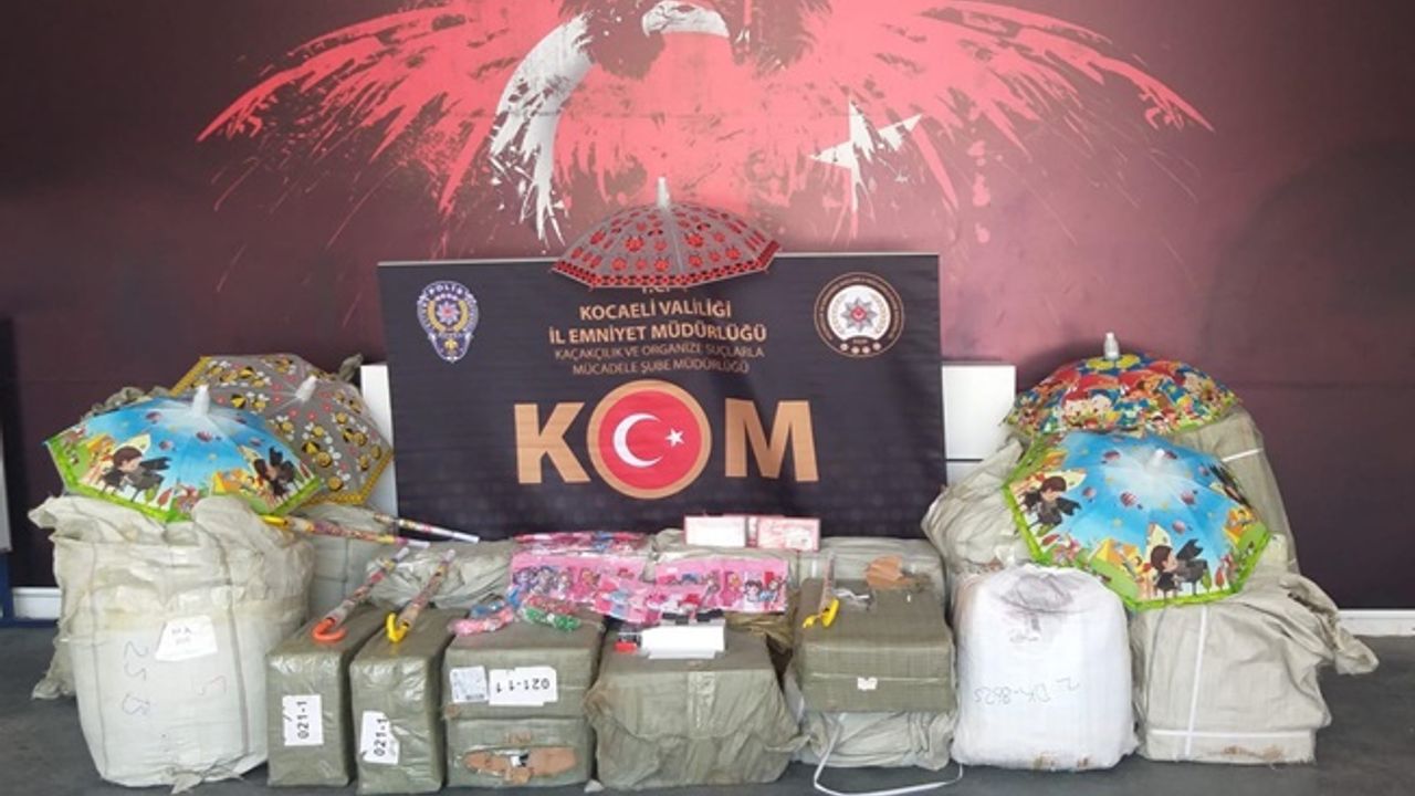 Kocaeli İl Emniyet Müdürlüğü tarafından kaçakçılara karşı yönelik yürütülen çalışmalar kapsamında TEM Otoyolu'nda bir kargo aracı durduruldu. Araçta yapılan aramada gümrük kaçağı olduğu değerlendirilen yaklaşık 700 adet şemsiye, 7 adet cep telefonu, 3 bin adet toka, 7 bin 500 adet çakmak ve bin adet plastik kol saati ele geçirildi. Firma yetkilileri ile 1 şüpheli şahıs hakkında yasal işlem yapıldı.
