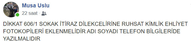 Gebze Adliyesine itiraz dilekçesini vermek için giden vatandaşlar için Osman Yılmaz Muhtar Uslu sosyal medya hesabında yaptığı açıklamada, "Gebze 606/1 sokakta ters yön cezası yiyen vatandaşların pandemi sürecinde adliyede yoğunluğa yol açmamaları ve zaman kaybetmemeleri için şikayet dilekçelerini doldurup adliyeye teslim ederken yanlarına araç ruhsat fotokopisi, kimlik ve ehliyet fotokopilerini alarak gitmeleri gerekiyor." dedi.