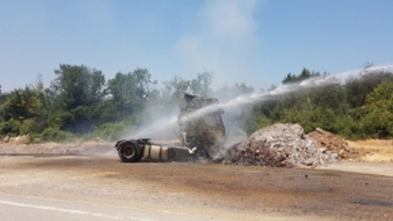 Gebze'de Kamyon Alev Aldı